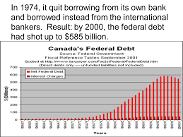 Because of the changes to the Bank of Canada in 1974 our national debt has skyrocketed from 21.6 billion to nearly 600 billion.