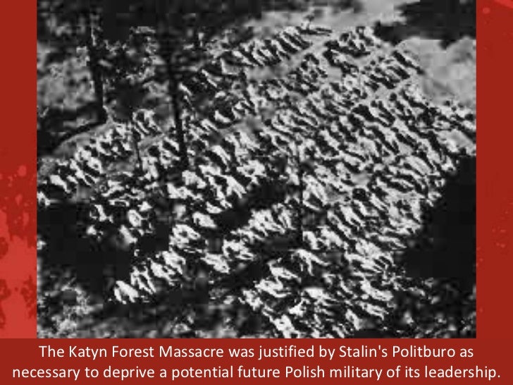 - 72. The Katyn Forest Massacre was justified by Stalins Politburo asnecessary to deprive a potential future Polish military of its leadership.