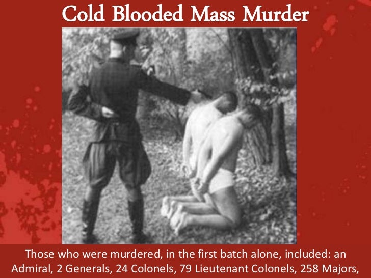 - 74. Cold Blooded Mass Murder Those who were murdered, in the first batch alone, included: anAdmiral, 2 Generals, 24 Colonels, 79 Lieutenant Colonels, 258 Majors,