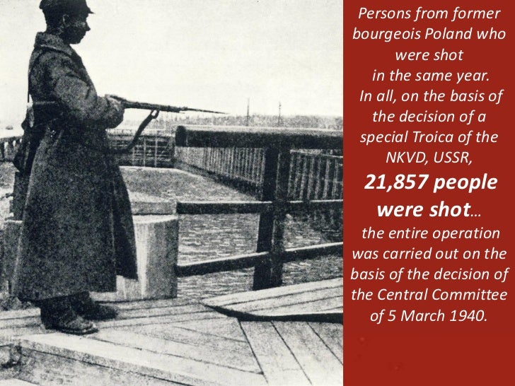 - 80. Persons from formerbourgeois Poland who were shot in the same year. In all, on the basis of the decision of a special Troica of the NKVD, USSR, 21,857 people were shot… the entire operationwas carried out on thebasis of the decision ofthe Central Committee of 5 March 1940.