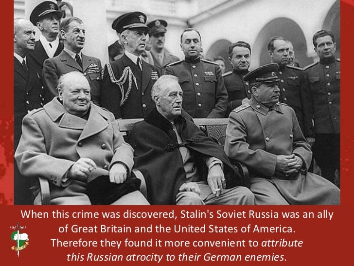 - 10. When this crime was discovered, Stalins Soviet Russia was an ally of Great Britain and the United States of America. Therefore they found it more convenient to attribute this Russian atrocity to their German enemies.