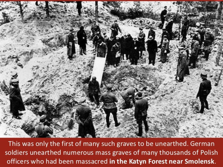 - 15. This was only the first of many such graves to be unearthed. Germansoldiers unearthed numerous mass graves of many thousands of Polish officers who had been massacred in the Katyn Forest near Smolensk.