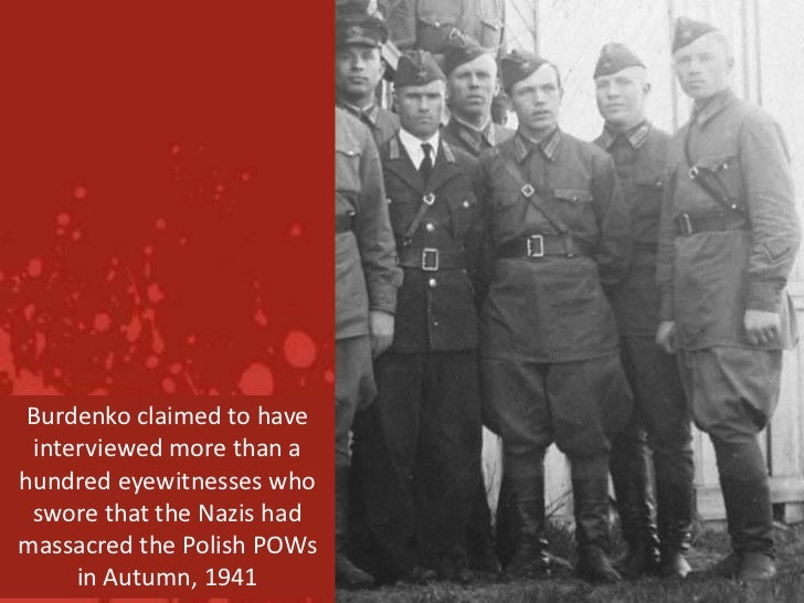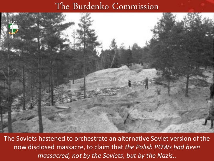 - 23. The Burdenko CommissionThe Soviets hastened to orchestrate an alternative Soviet version of the now disclosed massacre, to claim that the Polish POWs had been massacred, not by the Soviets, but by the Nazis..