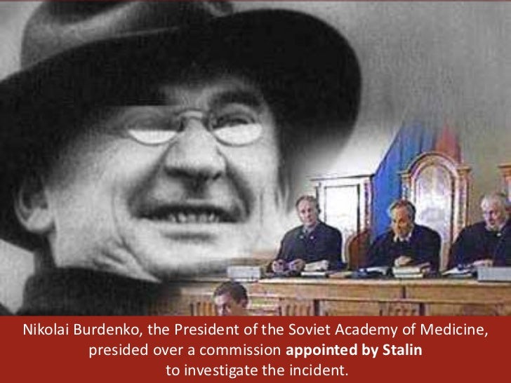 - 24. Nikolai Burdenko, the President of the Soviet Academy of Medicine, presided over a commission appointed by Stalin to investigate the incident.