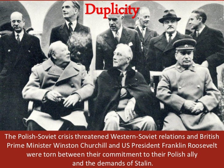 - 28. DuplicityThe Polish-Soviet crisis threatened Western-Soviet relations and British Prime Minister Winston Churchill and US President Franklin Roosevelt were torn between their commitment to their Polish ally and the demands of Stalin.