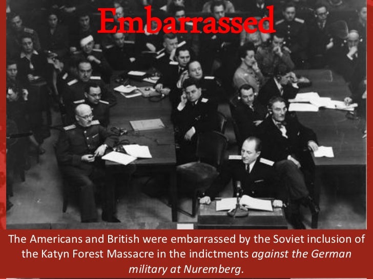 - 39. EmbarrassedThe Americans and British were embarrassed by the Soviet inclusion of the Katyn Forest Massacre in the indictments against the German military at Nuremberg.
