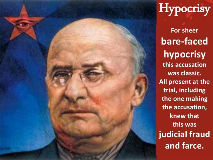 - 42. Hypocrisy For sheerbare-facedhypocrisy this accusation was classic.All present at the trial, including the one making the accusation, knew that this wasjudicial fraud and farce.