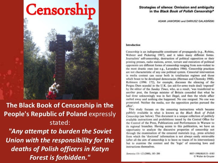 - 43. Censorship The Black Book of Censorship in thePeoples Republic of Poland expressly stated: "Any attempt to burden the SovietUnion with the responsibility for the deaths of Polish officers in Katyn Forest is forbidden."