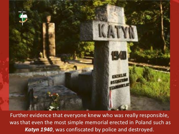 - 44. Further evidence that everyone knew who was really responsible,was that even the most simple memorial erected in Poland such as Katyn 1940, was confiscated by police and destroyed.