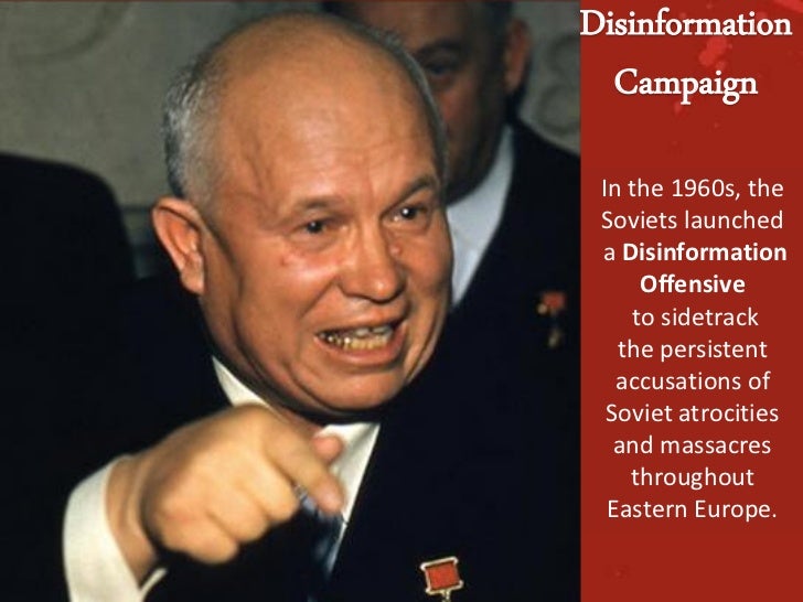 - 47. Disinformation Campaign In the 1960s, the Soviets launched a Disinformation Offensive to sidetrack the persistent accusations of Soviet atrocities and massacres throughout Eastern Europe.