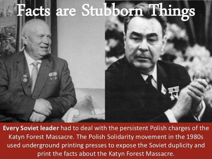 - 51. Facts are Stubborn ThingsEvery Soviet leader had to deal with the persistent Polish charges of the Katyn Forest Massacre. The Polish Solidarity movement in the 1980s used underground printing presses to expose the Soviet duplicity and print the facts about the Katyn Forest Massacre.