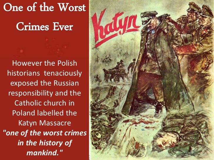 - 55. One of the Worst Crimes Ever However the Polish historians tenaciously exposed the Russian responsibility and the Catholic church in Poland labelled the Katyn Massacre"one of the worst crimes in the history of mankind."
