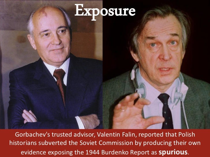 - 56. Exposure Gorbachevs trusted advisor, Valentin Falin, reported that Polishhistorians subverted the Soviet Commission by producing their own evidence exposing the 1944 Burdenko Report as spurious.