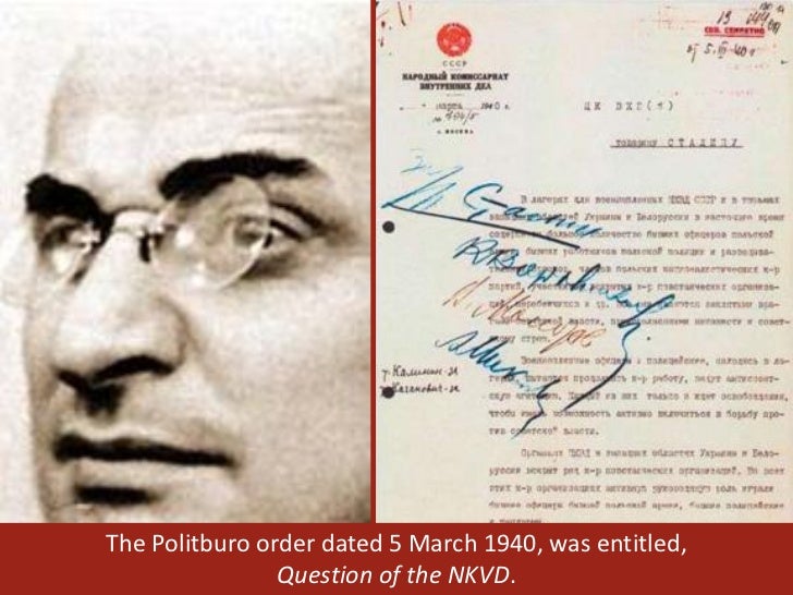 - 66. The Politburo order dated 5 March 1940, was entitled, Question of the NKVD.