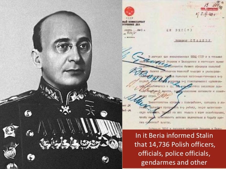 - 60. The documents made clear that theKatyn Massacre was the work of thehead of the NKVD, Lavrenty Beria.!